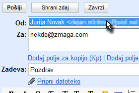 Ko boste ustvarjali novo sporočilo, boste lahko določali tudi e-poštni račun, s katerega naj se pošilja.