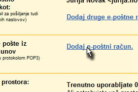 Nato pa pri polju Nalaganje pošte iz drugih računov kliknite na Dodaj e-poštni račun.
