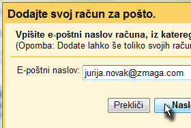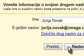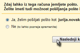 Pustite označeno Ja, želim pošiljati pošto kot... in potrdite na gumb Naslednji korak.
