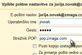 Potem pa vpišite še Uporabniško ime in Geslo ter Strežnik POP, ki ga uporablja vaš ponudnik e-pošte.