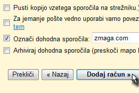 Kliknite tukaj, da si ogledate lekcijo Organizirajte si Gmail. Potem pa kliknite na gumb Dodaj račun. |
