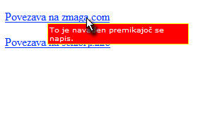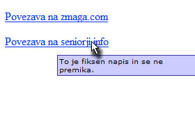 Prva povezava ima premikajoč se napis z miško, druga povezava pa ima statičen napis. No, saj boste videli. |