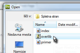 V novem oknu se postavite na mapo, kjer ste odpakirali datoteko overlib.js (glej sliko). |