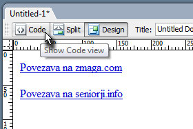 Kliknite sedaj na Code, da boste prešli v kodni način.