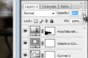 Layerju določite Opacity na okoli 68% (glej sliko).