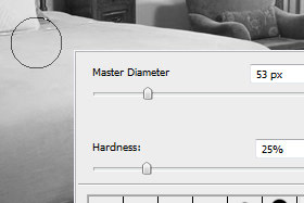 Kliknite na dokument z desnim miškinim gumbom in določite poljuben Master Diameter (čopič) in Hardness na okoli 25% (glej sliko).