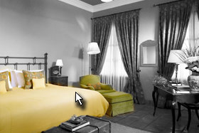 Sedaj pa z miško pojdite po predmetih, kjer želite imeti nazaj barve. V mojem primeru je to postelja in fotelj. če |