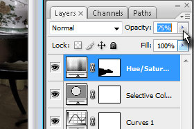 Določite še layerju Opacity na okoli 75% (glej sliko).