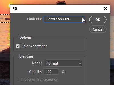 ![]() Pritisnil tipki Ctrl + F5 in polje Contents določil Content-Aware in potrdil na gumb OK. |