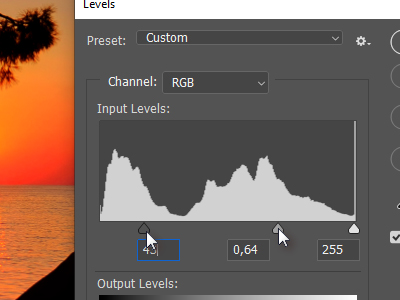 ![]() Nato sem kliknil na Image in izbral Levels. Temni in sivi drsnik sem nastavil po očutku, da sem silhueto bolje izpostavili. |