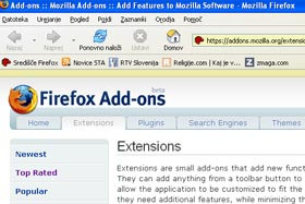 Opazili boste, da vam Firefox podatke išče sproti. Razširitev je na tone. Poizkusite namestiti še razširitev za vreme (weather) in uporavljanje z gmail-om (gmail). |