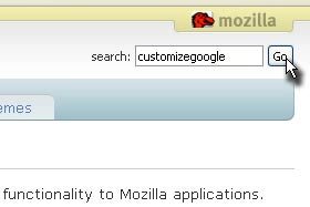 Jaz vam bom predstavil osebno zelo uporabno razširitev. Vpišite v polje Search customizegoogle in kliknite na gumb Go.