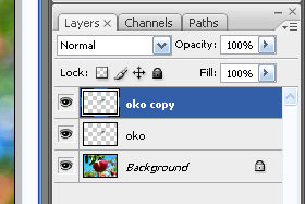 ![]() Pritisnite tipki CTRL + J, da duplicirate layer očesa. |