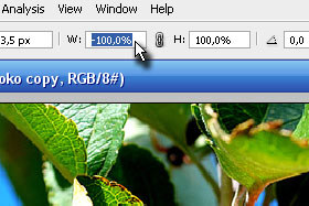 ![]() Pritisnite tipki CTRL + T in zgoraj v orodni vrstici določite W (Width) na -100% (glej sliko), da boste obrnili layer... |