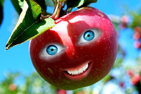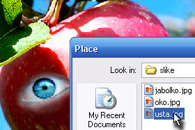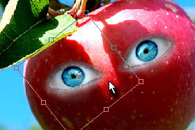 Se pravi, da imaš ti izbran layer z jabolkom, ne pa z očmi. spremenil: Tux (24.4.2009 ob 19.58.14)