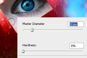 ![]() Kliknite z desnim miškinim gumbom na dokument in določite poljuben Master Diameter (velikost radirke) in Hardness na 0% (glej sliko). |