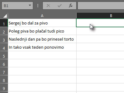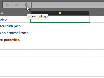 Zato je potrebno označiti celico, kjer bomo to izvedli.