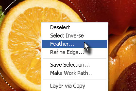 Kliknite na označen del z desnim miškinim gumbom in izberite Feather...