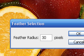 V novem oknu Feather Radius določite okoli 30 pixels in potrdite na gumb OK.