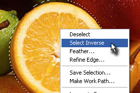 Kliknite na označen del z desnim miškinim gumbom in izberite Select Inverse.