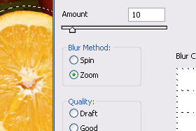V novem oknu določite Amount na 10, Blur method Zoom in Quality Best. Potrdite na gumb OK. |