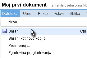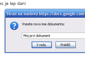 In v novem oknu poimenujte vaš dokument z poljubnim imenom.