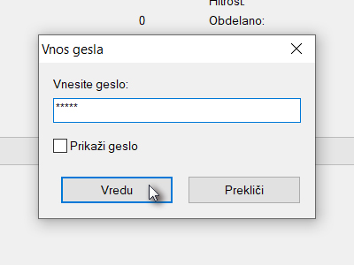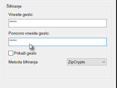 ![]() V polju Šifriranje dvakrat vnesite isto geslo. Potrdite na gumb V redu. |