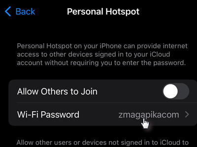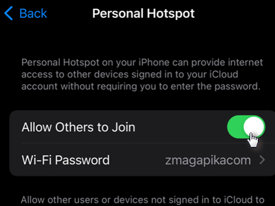 ![]() Vklopite možnost Allow Others to Join. To je to, sedaj se lahko povežete na vaš iPhone, ki vam služi kot modem. |