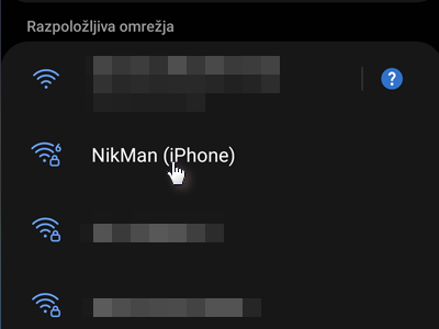 ![]() Wi-Fi omrežje je na Android telefonu videti tako. |