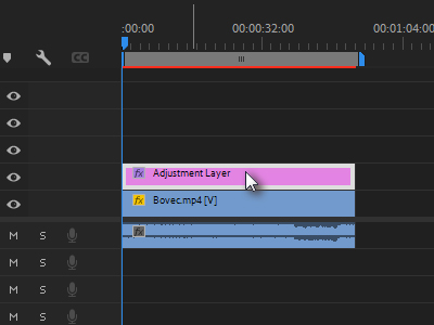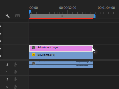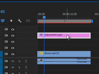 ![]() Adjusment Layer naj bo enako dolg kot videoposnetek pod njim. Adjustment Layer pustite označen. |