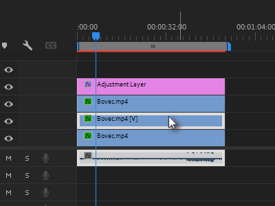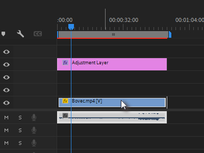![]() Adjustment Layer na časovnici premaknite za dve vrstici višje (glej sliko). |