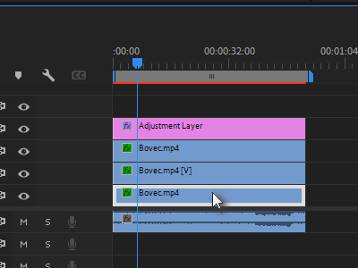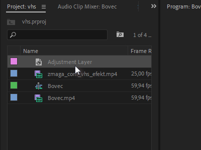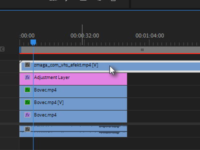![]() Dodajte Adjustment Layer na časovnico nad videposnetkom (glej sliko). |