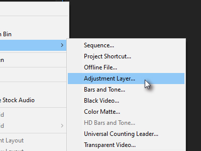 ![]() V vaš projekt dodatje še Adjustment Layer. Kliknite na File, New in izberite Adjustment Layer... |