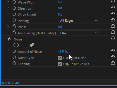 ![]() V oknu Effect Controls za Noise nastavite podobne vrednosti kot so vidne na sliki. |