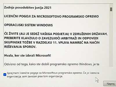 ![]() Če se strinjate s pogoji, jih označite in kliknite Naprej. |