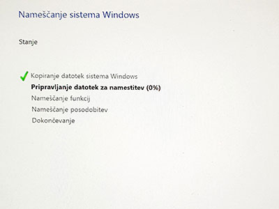 ![]() Windows 11 se bodo nalagali. Vmes bodo tudi samodejno nastavili BIOS, da se ne bo računalnik ponovno zaganjal iz USB ključka najprej. |
