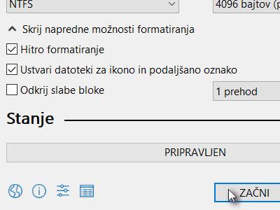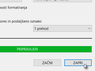 ![]() Počakajte, da se USB pripravi in nato kliknite na gumb ZAPRI. Pustite USB ključek v računalniku. |