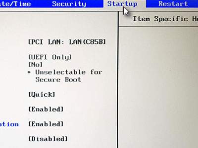 ![]() Znova zaženite računalnik in počakajte, da se vam začne namesitev (pojdi na korak 9). Če se vam namestitev ne začne, potem morate nastaviti v BIOS možnost zagona iz USB ključka. To storite tako, da takoj, ko se prižge računalnik pritiskate tipko DEL ali pa F1 ali pa F2 (odvisno od računalnika). V BIOS poiščite Startup ... |