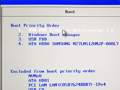 ![]() Potem pa nekje odprite Boot order in nastavite na prvo mesto USB ključek, ki je že vtaknjen v vaš računalnik. |