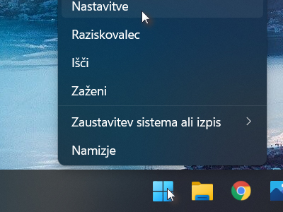 Kliknite z desnim miškinim gumbom na ikono Začetek in izberite Nastavitve.