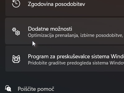 ![]() Nato pa v istem oknu kliknite na Dodatne možnosti. |
