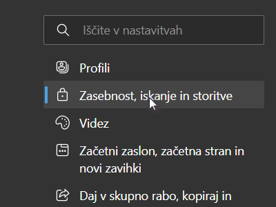 ![]() V novem oknu kliknite Zasebnost, iskanje in storitve. |