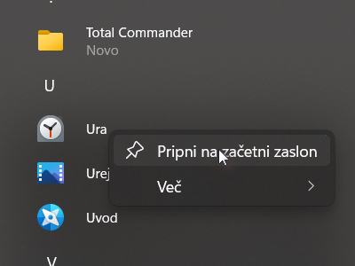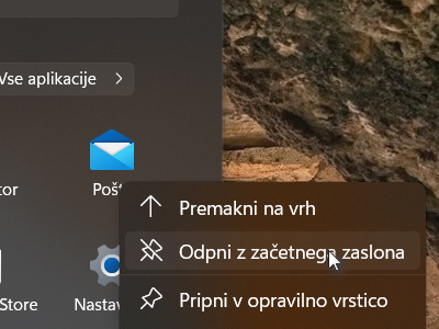 ![]() Če želite na začetnem meniju odstraniti ikone, kliknite na njih z desnim miškinim gumbom in izberite Odpni z začetnega zaslona. |