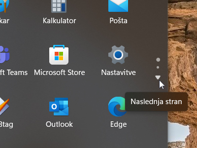 ![]() Kliknite ponovno na začetni menu in v primeru, da bo aplikacij na njemu več, kliknite tudi na Naslednja stran, da vidite vse pripete aplikacije. |