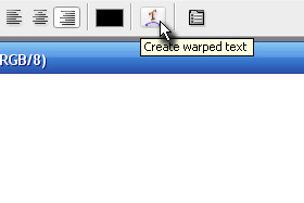 Pritisnite tipko T, da ponovno izberite orodje Horizontal Type Tool in zgoraj v orodni vrstici kliknite na Create warped text.
