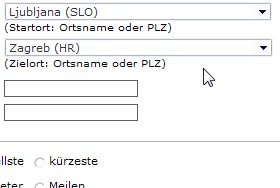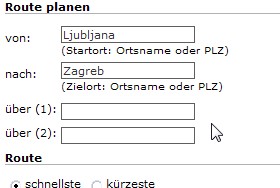 Sedaj pa se premaknite k izpolnjevalnim poljem. V polje von vpišite vašo začetno točko (jaz sem izbral Ljubljano).