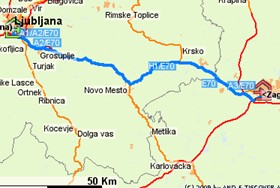 Na zemljevidu se vam izriše pot (v mojem primeru od Ljubljane do Zagreba).