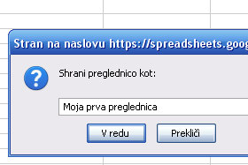 Kliknite z miško na napis Preglednica ni shranjena... |