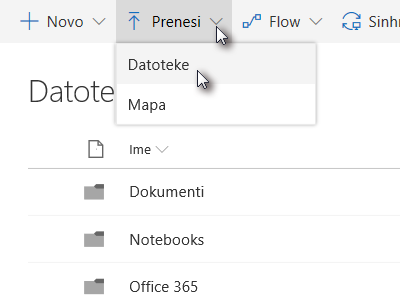 Kliknite na Prenesi in izberite Datoteke.
