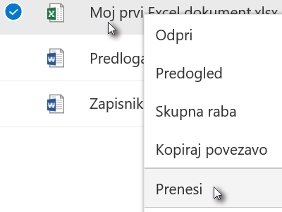 Potem pa kliknite z desnim miškinim gumbom na označene datoteke ali datoteko in izberite Prenesi.